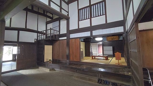 右側の座敷は、「主人の間」です。上を見上げれば、二階があります。左側は女中部屋だったと言われています。